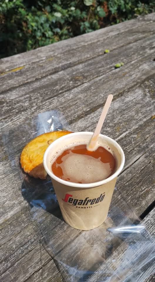 | Bij Well pauzeer ik traditioneel voor een koffie en een gevulde koek bij het tankstation, nu al de zesde keer. Ik denk dat het salaris niet best is want ik ben nog nooit twee keer door dezelfde persoon geholpen. 🙄