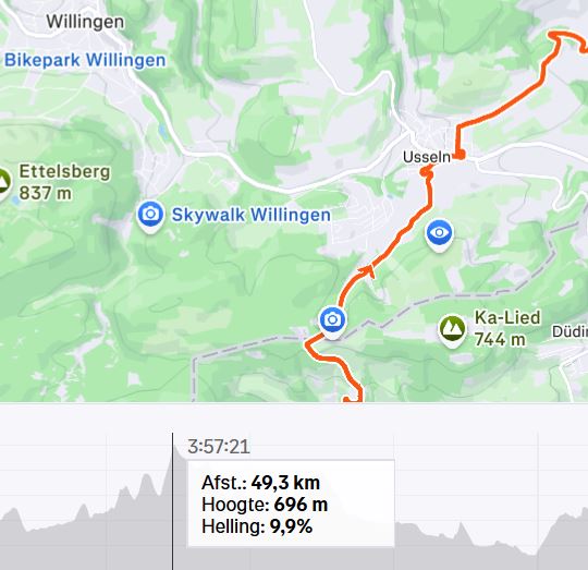 Ik zie op mijn strava account dat ik vandaag 2.569 m hoogteverschil heb overwonnen. Pfffff.
